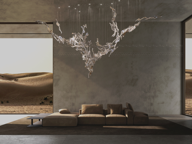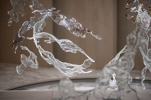 Splash is a glass lighting installation by Lasvit designer Martin Gallo that explores the emotional resonance of water and its fluid, ever-changing forms. Designed to evoke a spectrum of moods – from the serenity of a calm pond, through the joy of children splashing in puddles, to the power of a raging river – the fused glass installation reflects the shifting nature of water.