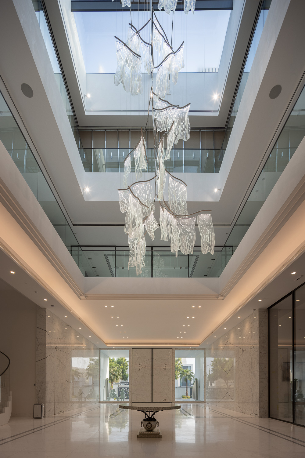Inspired by the quiet magic of frozen morning dew, this bespoke glass sculpture was created for entrepreneur Sima Ganwani Ved and now graces her private villa in Dubai's elite Emirates Hills, designed by Romano Mastrella. Can you hear the glistening effect of dew crystals?