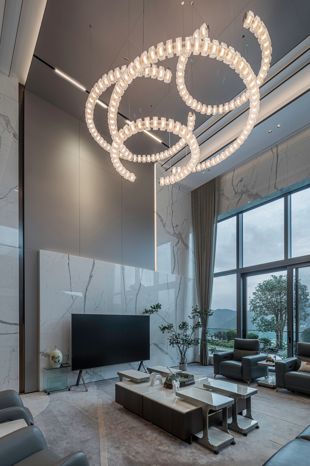 Set high above the Kau To Shan mountains, this private residence opens with a living room shaped by a luminous glass installation, reminiscent of a calm orbit in space. The design alludes to the celestial circle, a symbol of positivity. Its soft glow and measured rhythm allow the glass to gently shape the home.