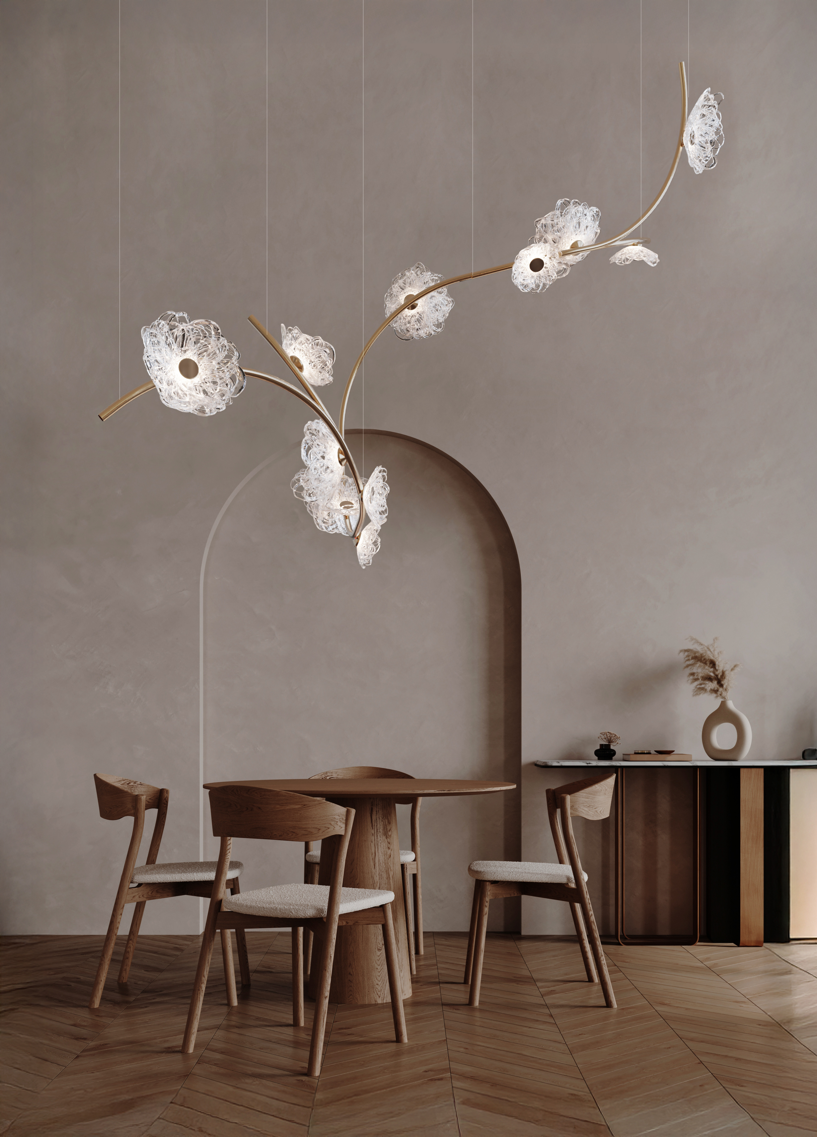 Created by designer Martin Gallo, Rosa draws from the determination of climbing plants – those that seek light in slow, graceful motion. The design captures this instinct to grow, reaching upward with sculptural lines and luminous presence.