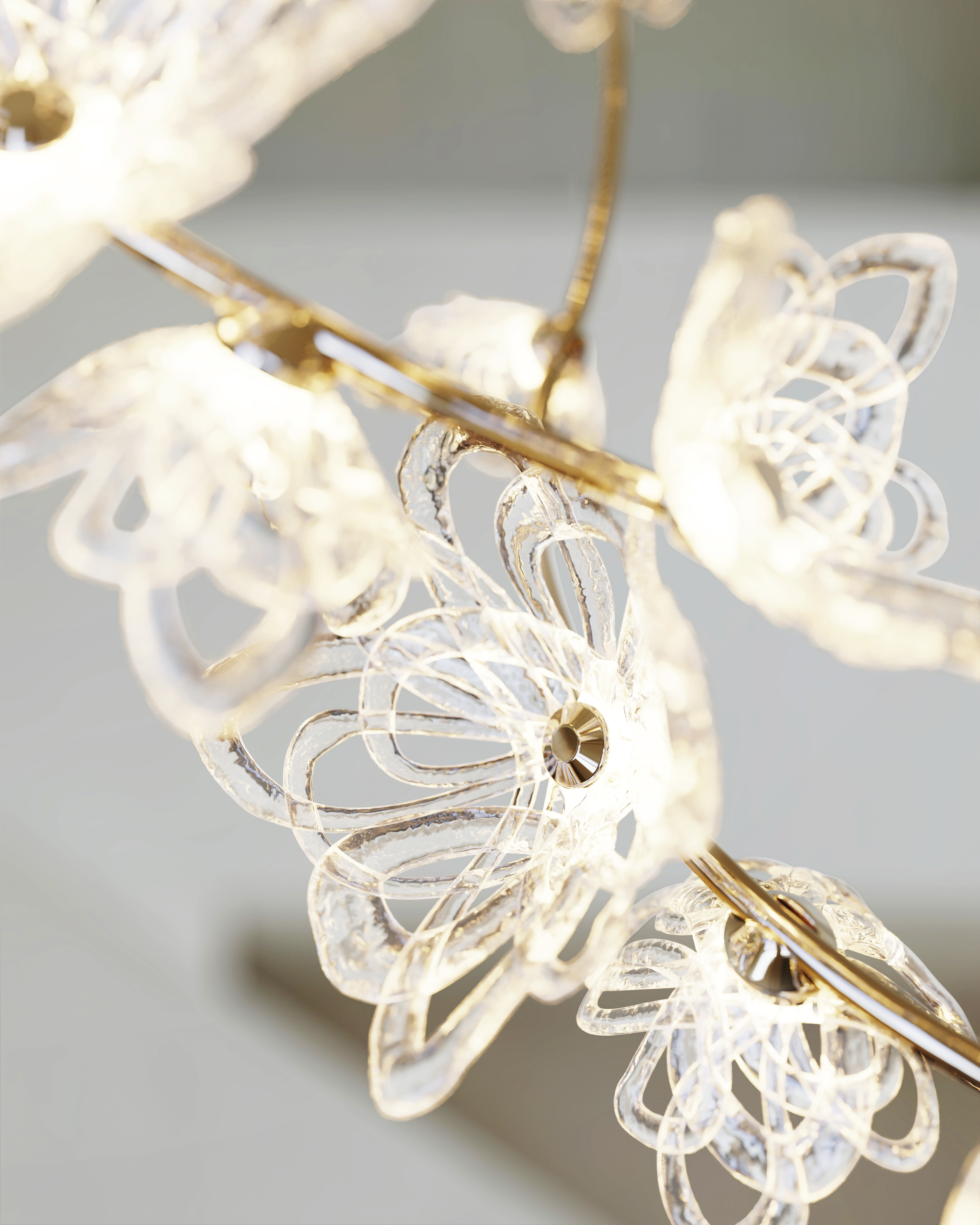 At the heart of Rosa lies a flexible system of hand-crafted glass elements. Each component can be connected, repeated, and reconfigured, allowing the installation to grow organically within any space. From a single, glowing bloom to a sculptural canopy that fills a room, Rosa showcases the technical mastery of Lasvit’s artisans and their ability to translate nature’s rhythms into enduring design.