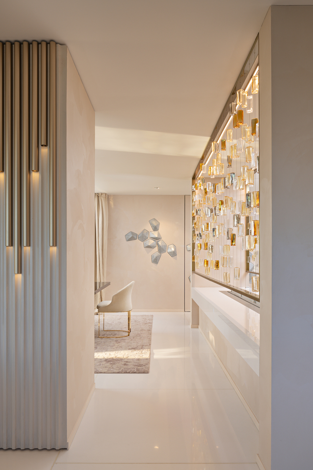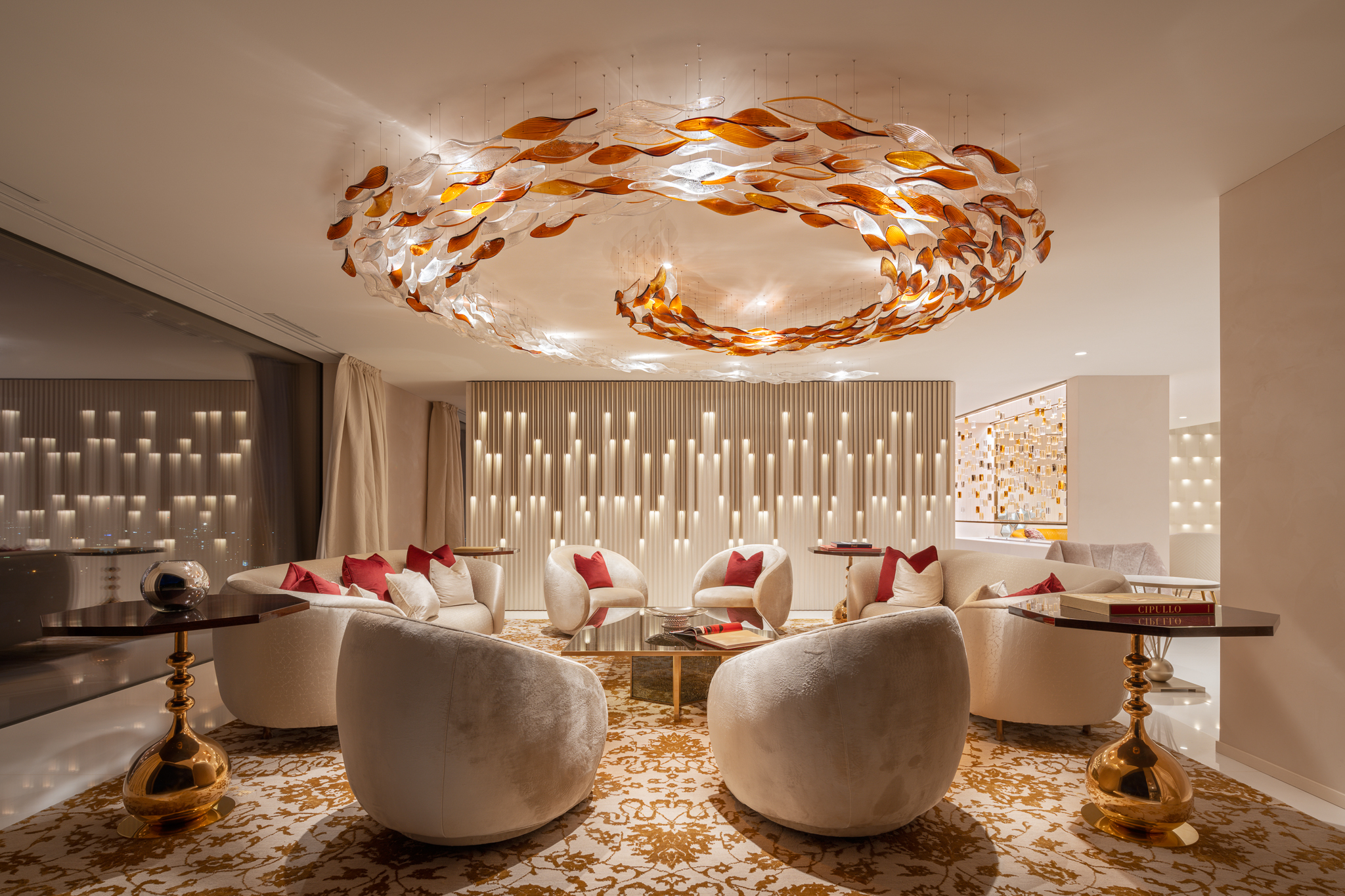In Baar, Switzerland, Lasvit shaped a series of bespoke glass works for the Zug villa, created for multiple rooms and tuned to the green valley and lake light. From the formal sitting area to more intimate spaces, each piece gathers the day and warms by evening. The result is a living space attuned to its owners – a living proof that glass can shape a home that feels unmistakably yours.